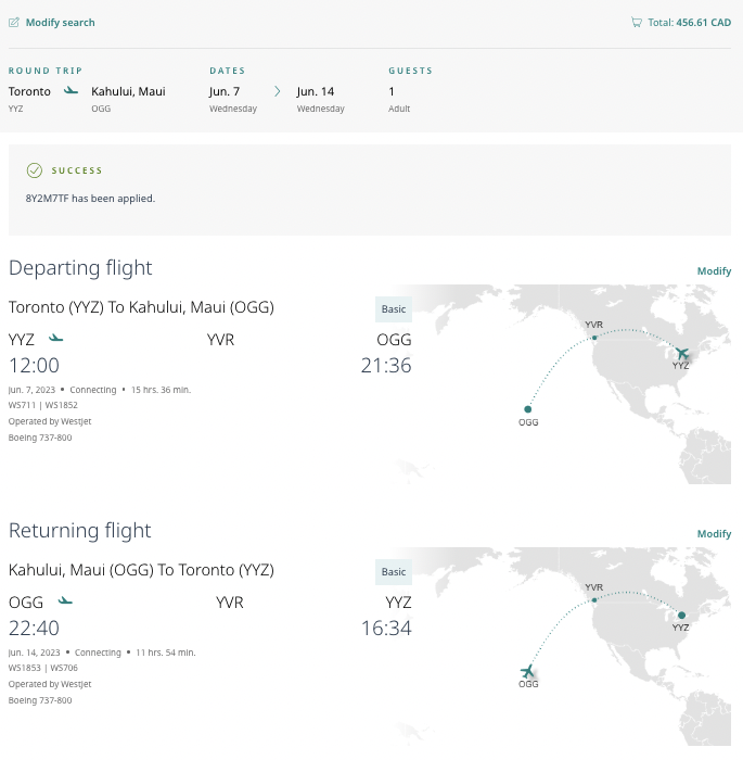 Westjet has dropped the price on their Maui flights from multiple Canadian departures down to $456 CAD roundtrip including taxes.